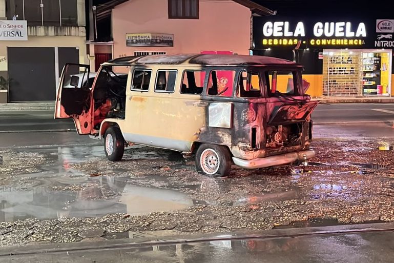Veículo estava estacionado próximo às bombas e foi completamente tomado