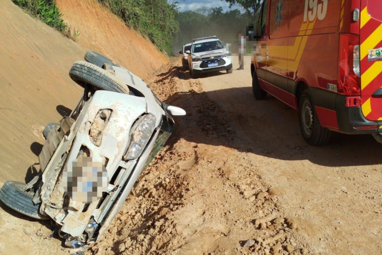 Condutor fica ferido após capotamento no Centro de Guabiruba
