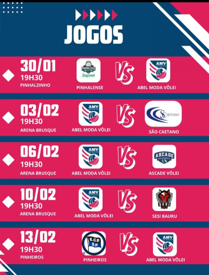 O próximo compromisso da equipe já tem data, horário e local definidos. A Abel volta à quadra na Arena Brusque, na próxima terça-feira, 3 de fevereiro, às 19h30, quando enfrenta o São Caetano, em mais um duelo importante pela sequência da Superliga B.