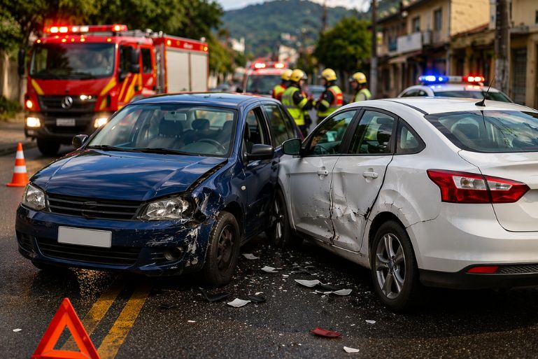 Um acidente de trânsito envolvendo dois veículos foi registrado na tarde deste sábado, 18 de abril de 2026, por volta das 15h04, na Rua 10 de Junho, no Centro de Guabiruba.