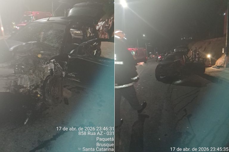 Um acidente de trânsito envolvendo dois veículos deixou três pessoas feridas na noite desta sexta-feira (17), em Brusque. A ocorrência foi registrada por volta das 23h19, na rua Padre Antônio Eising, no bairro Azambuja.