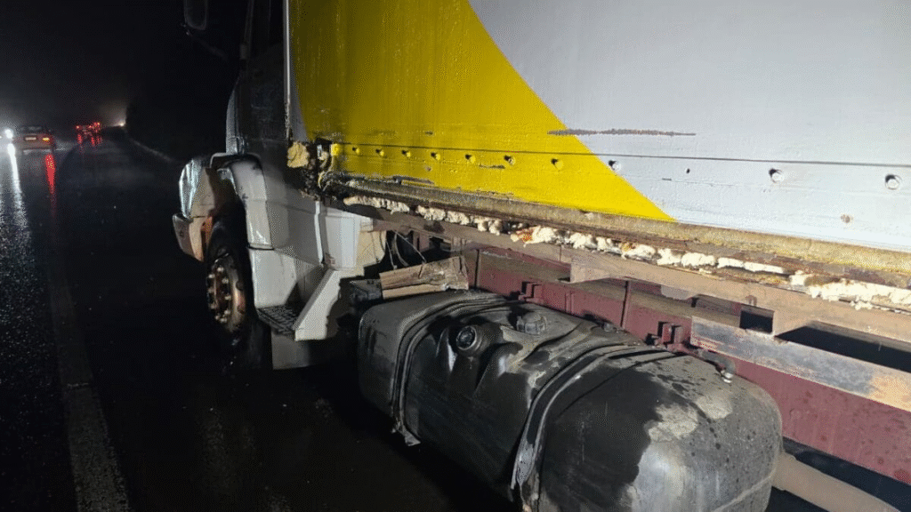 No caminhão estava um homem maior de idade, que foi encontrado fora do veículo, consciente, orientado e caminhando pela pista. Ele não apresentava ferimentos aparentes, recusou atendimento médico e permaneceu no local.