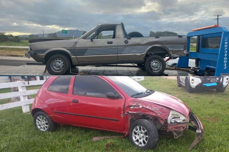 Dois homens ficaram feridos em um acidente de trânsito registrado na tarde deste sábado (20) na rodovia Antônio Heil (SC-486), no bairro Brilhante, em Itajaí. A ocorrência foi atendida por volta das 16h25, no km 14,100 da rodovia.