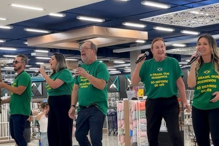 À medida que a música se espalhava pela megaloja, os clientes foram interrompendo suas compras para assistir ao espetáculo. Muitos se mostraram emocionados com a performance, que trouxe ao ambiente um clima de união e espiritualidade.