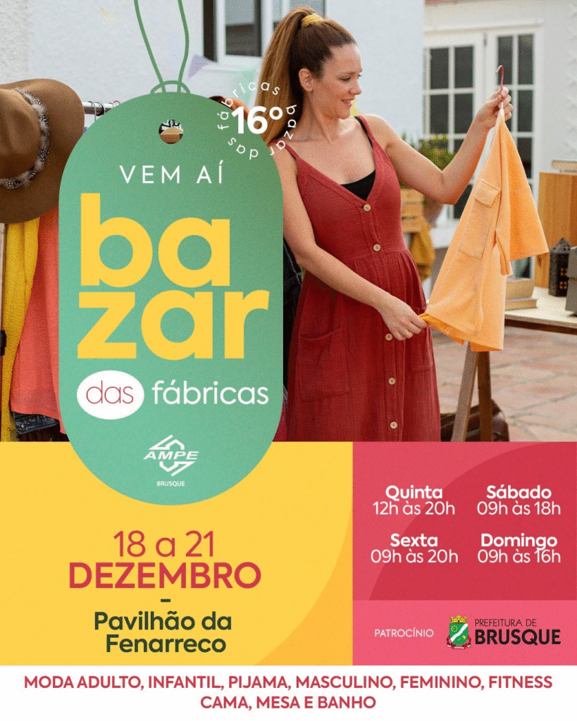 De 18 a 21 de dezembro a Associação das Micro e Pequenas Empresas de Brusque e Região (AmpeBr) realiza a 16ª edição do Bazar das Fábricas, no Pavilhão da Fenarreco.