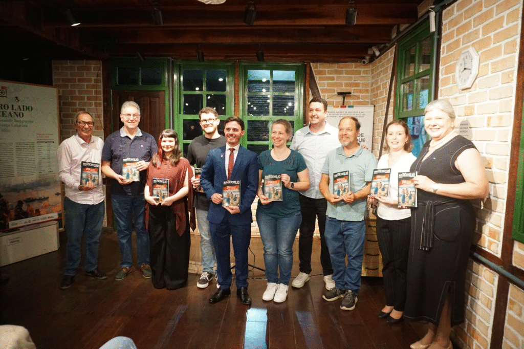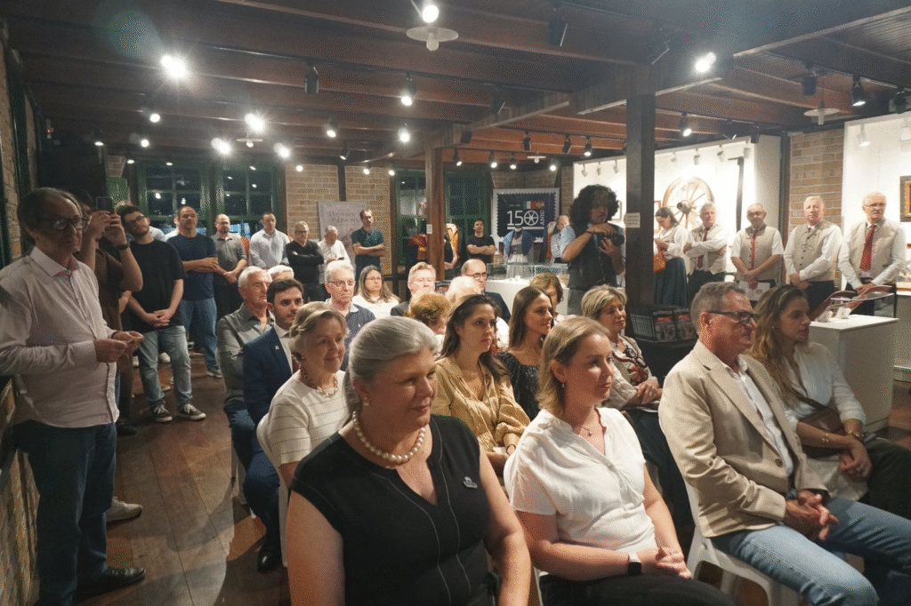 O Museu Casa de Brusque recebeu, na noite desta quinta-feira (27), autoridades, pesquisadores, autores e representantes da comunidade para o lançamento do Anuário Notícias de Vicente Só 2025. A cerimônia, conduzida pelo cerimonialista Artur Staloch, celebrou a nova edição da mais tradicional publicação voltada à preservação da memória histórica de Brusque e região. O evento também marcou o encerramento da exposição temporária Do outro lado do oceano: 150 anos da grande imigração italiana em Santa Catarina.
