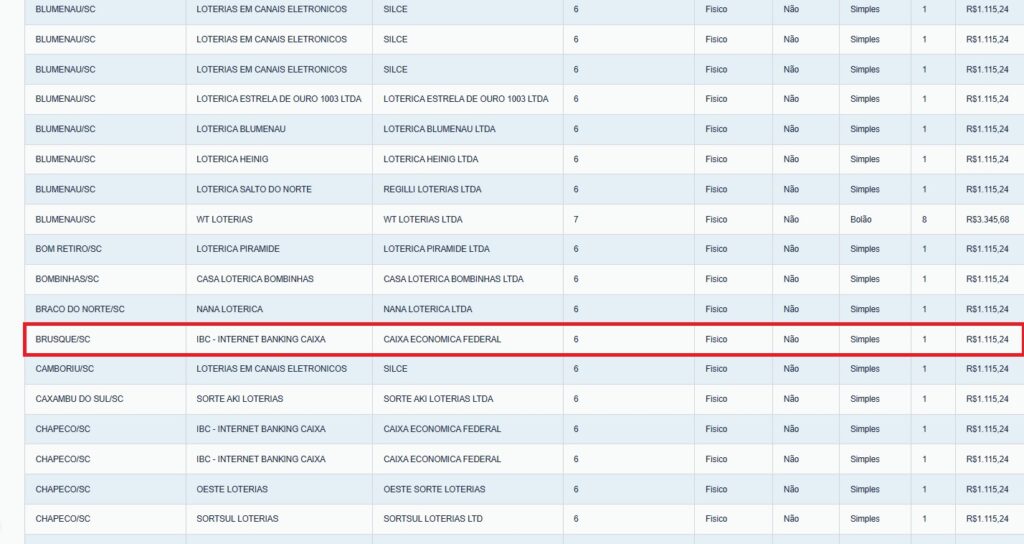 Entre os ganhadores com quatro acertos está um aposta online feita em Brusque. Segundo o portal da Caixa Econômica Federal, o apostado receberá o valor de R$ R$1.115,24.