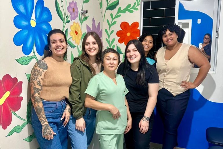 Professora há 15 anos e muralista, Záfia conta que o projeto começou quando recebeu o convite da servidora Jenifer para revitalizar o ambiente. “Fiquei muito feliz e encantada com a ideia assim que recebi o convite”, relembra. Animada com a proposta, ela levou a sugestão para a turma adulta de pintura. “Comentei com as alunas e sugeri que nosso último trabalho do ano, em vez de ser em tela, fosse realizado diretamente na parede. Elas adoraram a ideia, e logo começamos a planejar juntas.”