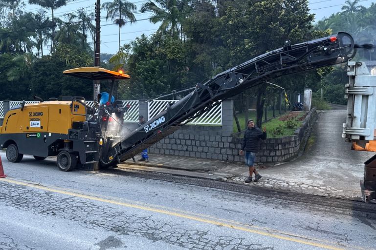 Máquinas e servidores da Secretaria de Obras foram para a rua Frederico Petruski, que liga Brusque a Guabiruba, logo cedo, começando os trabalhos por volta das 5h. Mais de 20 servidores irão atuar nesta intervenção, além de uma fresadora, uma vibroacabadora, uma retroescavadeira, uma pá carregadeira, cinco caminhões truck traçado basculantes, uma bobcat e uma mini carregadeira, além de uma patrola da frota antiga do Obras e um caminhão pipa terceirizado.