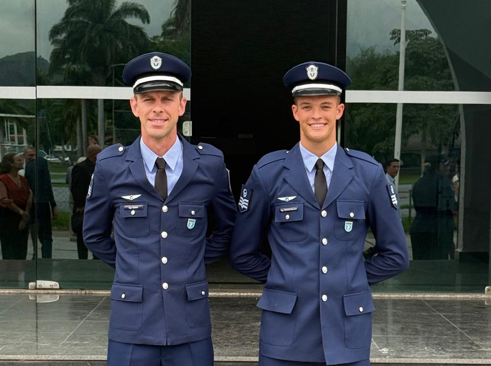 Sob o céu que consagrou os primeiros voos do país, dois talentos de Brusque alçam um novo patamar em suas trajetórias, rumo a novos horizontes. Nesta sexta-feira (20), na Base Aérea dos Afonsos, no Rio de Janeiro, conhecida como “berço da aviação brasileira”, os ciclistas André Eduardo Gohr e Lucas Moresco Zimmermann transformaram anos de dedicação ao esporte em uma conquista que vai além das pistas: a formação como 3º sargentos da Força Aérea Brasileira (FAB), por meio do Programa Atletas de Alto Rendimento (PAAR).