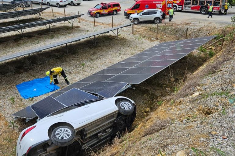 De acordo com informações do Corpo de Bombeiros Militar, o carro parou lateralizado sobre placas de energia solar pertencentes a uma empresa próxima à rodovia.