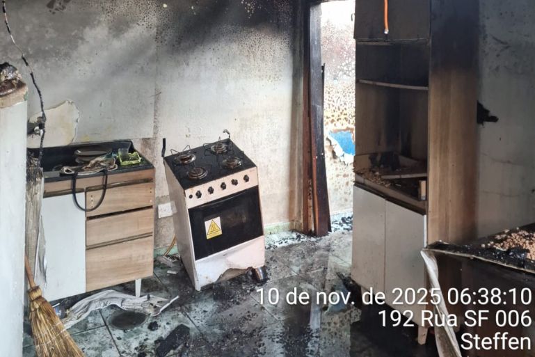 Na madrugada desta segunda-feira (10/11), um incêndio destruiu uma casa de madeira localizada na Rua SF-006, no bairro Steffen, em Brusque. O fogo começou por volta das 5h20 e mobilizou equipes do Corpo de Bombeiros de Brusque e Guabiruba, que atuaram de forma conjunta no combate às chamas.
