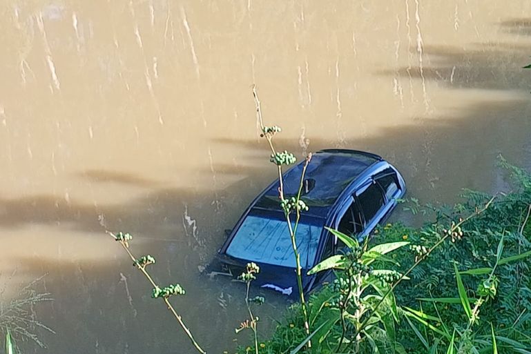 Ao chegarem ao local, as equipes constataram que o carro estava na margem do rio, com o nível da água atingindo aproximadamente metade das portas. O vidro frontal estava aberto e, inicialmente, não havia indícios de ocupantes.