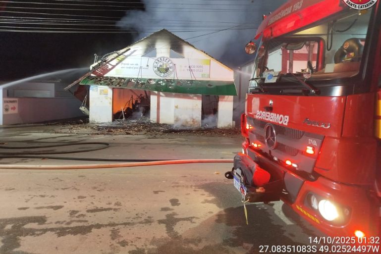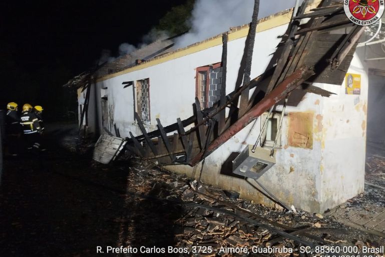 Um incêndio de grandes proporções destruiu completamente uma agropecuária localizada na Rua Prefeito Carlos Boos, no bairro Aymoré, em Guabiruba, durante a madrugada desta terça-feira (14/10). O Corpo de Bombeiros foi acionado por volta da 1h para atender a ocorrência, que mobilizou diversas viaturas das cidades vizinhas.