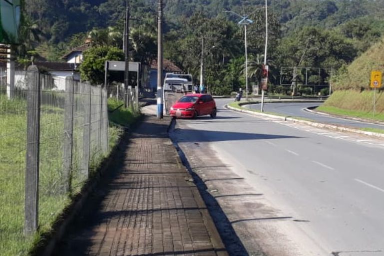 O início da manhã desta segunda-feira (13/10) foi marcada por uma saída de pista seguida de colisão em poste no Bairro Imigrantes, em Guabiruba.