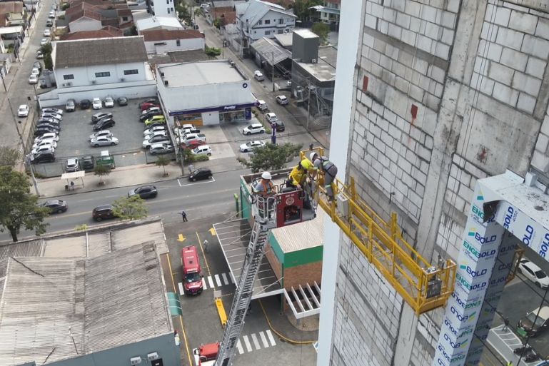 O Corpo de Bombeiros de Blumenau realizou, na manhã desta quarta-feira (1º), o resgate de dois operários que ficaram presos em um andaime suspenso durante uma obra no bairro Vila Nova.