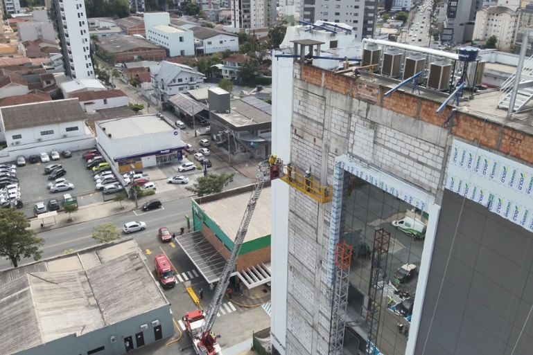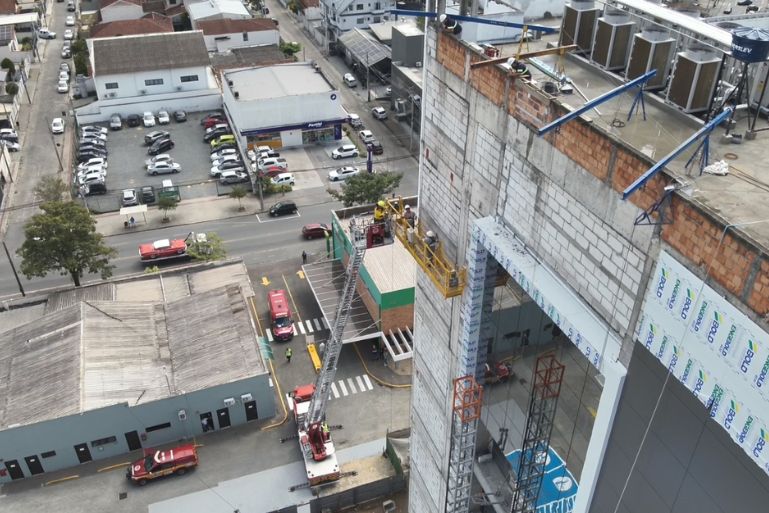De acordo com os bombeiros, os trabalhadores estavam em um andaime do tipo “jaú”, que apresentou falha durante a operação. As vítimas ficaram presas a cerca de 35 metros de altura, sem condições de descer por meios próprios.