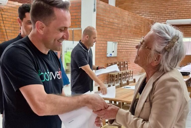 A cerimônia oficial de entrega das matrículas ocorreu no Centro de Convivência e Fortalecimento de Vínculos de Botuverá, com a presença dos beneficiários, do prefeito municipal, Victor Wietcowsky, da procuradora-geral do Município, Fabiana Amália Dalcastagné, e da secretária de Assistência Social, Andressa Morelli Vicentini, além da empresa responsável pelo processamento do programa.