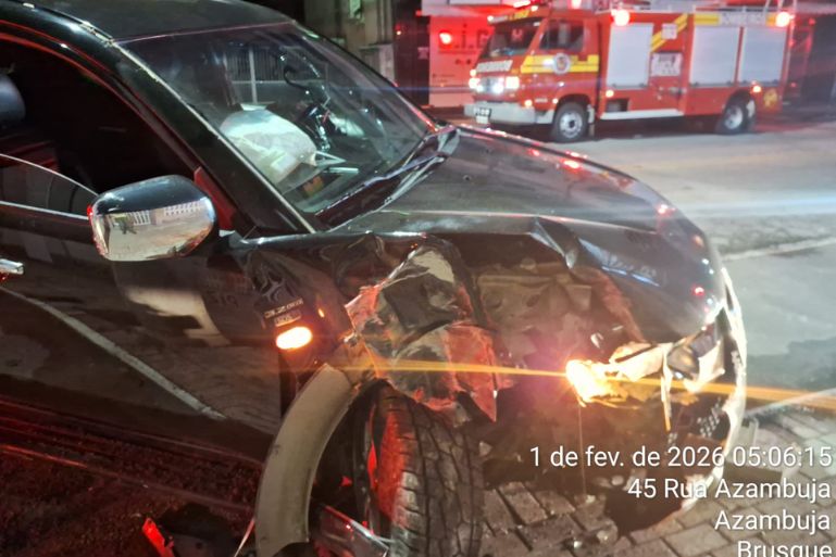 Na madrugada deste sábado (1º), por volta das 4h51, equipes do Corpo de Bombeiros Militar foram acionadas para atender a uma colisão de veículo contra poste na Rua Azambuja, bairro Azambuja, em Brusque.