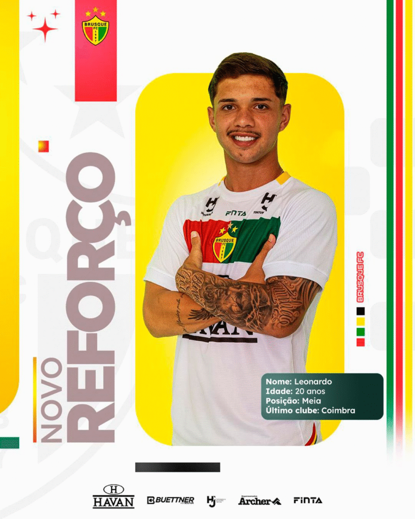 Mais jovem, Leonardo Storrer chega ao Quadricolor após atuar pelo sub-20 do Coimbra-MG e Patriotas-PR durante o ano passado. A contratação reforça a política do Brusque de apostar também em atletas com potencial de desenvolvimento, unindo juventude e preparação técnica ao grupo principal.