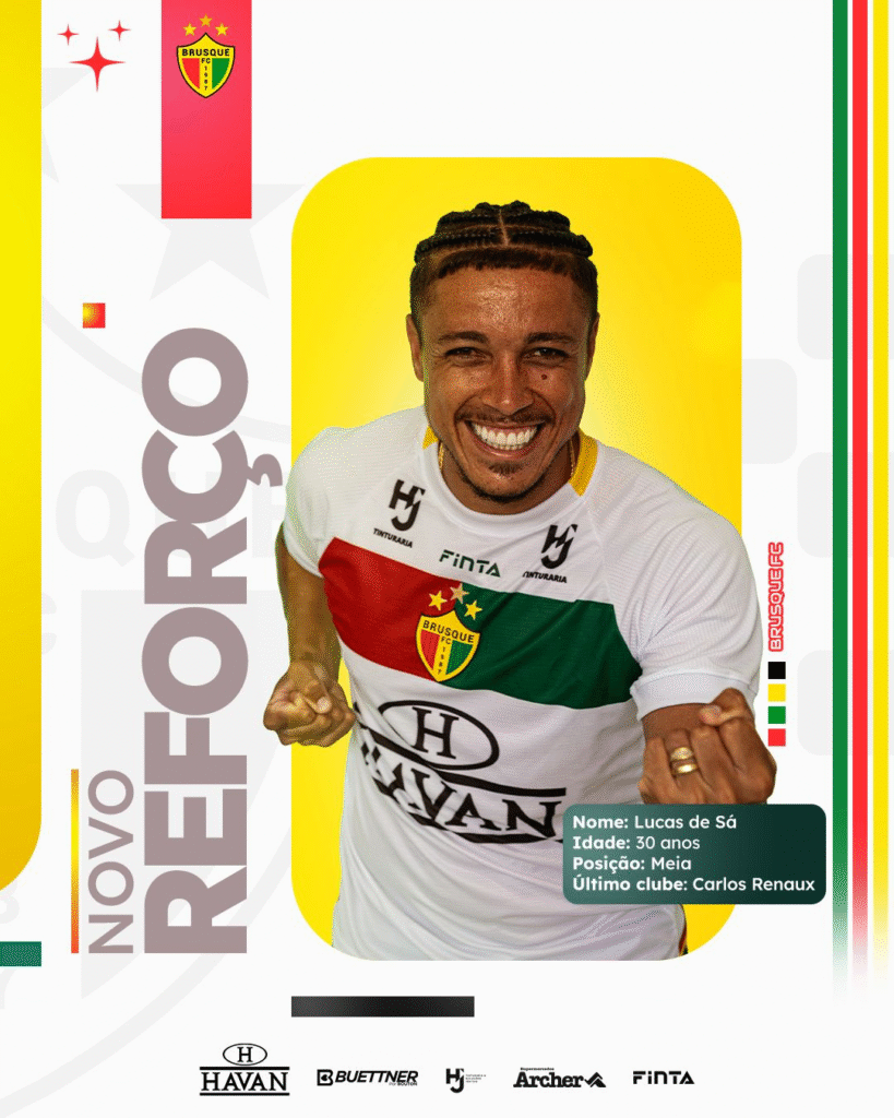 Com passagens por Joinville e Carlos Renaux em 2025, Lucas de Sá traz mais experiência ao setor de meio-campo do Brusque. No JEC, atuou em 11 partidas, com duas assistências e nenhum gol. Já pelo Carlos Renaux, foram 3 jogos disputados.