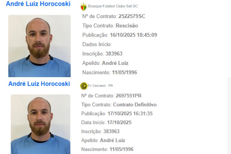 O arqueiro foi registrado como novo reforço do FC Cascavel, do Paraná. Pelo Brusque, atuou em sete partidas: seis pela Copa SC e uma pela Série C.