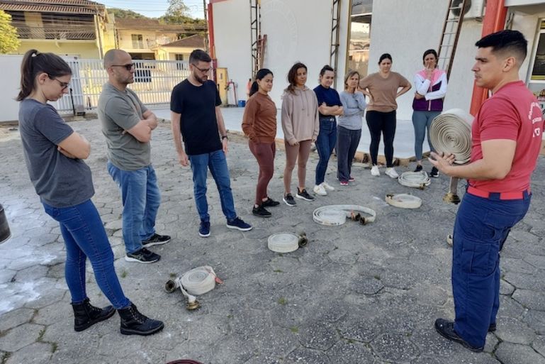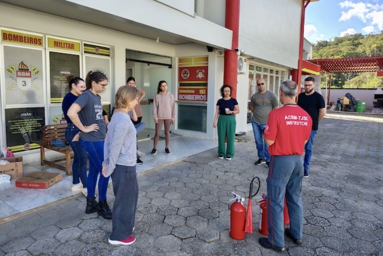 De acordo com o capitão Marcus de Aguiar Imbrosio, subchefe da Assessoria do Corpo de Bombeiros Militar do TJSC, a formação abordou temas como sistemas preventivos contra incêndio, uso de extintores, abandono de edificações e noções de primeiros socorros, incluindo avaliação da vítima, manobras de desobstrução de vias aéreas, reanimação cardiopulmonar (RCP) e controle de hemorragias.