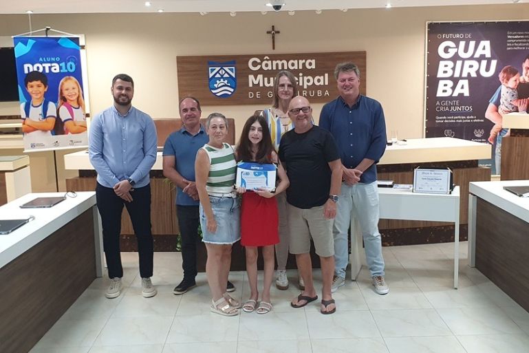 A Câmara Municipal de Guabiruba foi palco, na noite desta quarta-feira (28/1), da cerimônia de entrega do Prêmio Aluno Nota 10, que reconheceu os destaques do ano letivo de 2025 na rede municipal de ensino. A iniciativa é uma homenagem da Prefeitura e do Poder Legislativo aos estudantes que obtiveram desempenho de destaque ao longo do ano escolar.