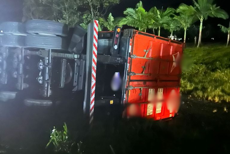 No local, as equipes confirmaram o acidente e realizaram a sinalização da via para garantir a segurança, já que a concessionária responsável ainda não havia chegado. O caminhão, que transportava um contêiner tombou na área de escape da rodovia, nas proximidades de uma empresa, no sentido sul.
