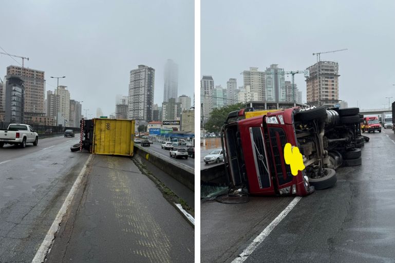 Um caminhão tombou na tarde desta segunda-feira (1º) na BR-101, altura do km 151, no bairro Andorinha, em Itapema. O acidente foi registrado às 14h05min e mobilizou equipes do Corpo de Bombeiros Militar do município.