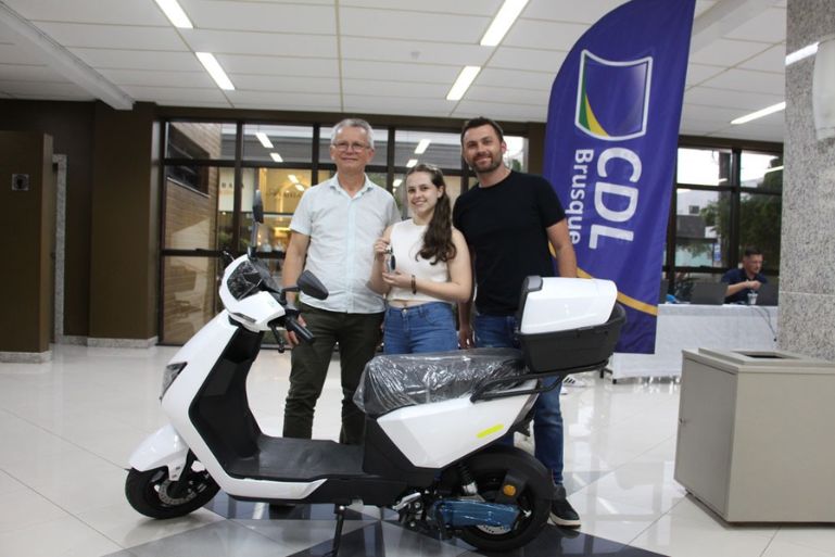 Carine Daroceski, 22 anos, recebeu o prêmio principal desta primeira etapa do sorteio: uma scooter ok. Brusquense, moradora do bairro Ponta Russa, ela celebra a conquista. “Não acreditei quando recebi a mensagem, mas agora estou muito contente. Vou continuar participando da promoção”, diz a jovem que trabalha em uma farmácia e ainda não tem planos sobre o destino da moto.