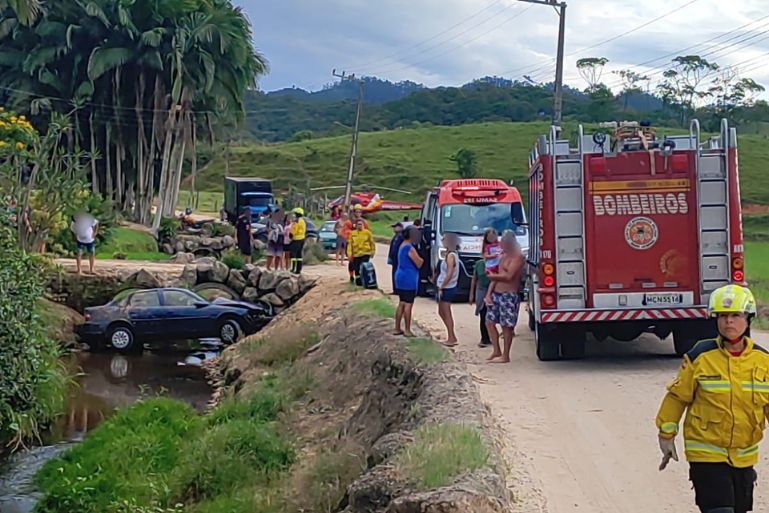 Um acidente de trânsito com lesões corporais foi registrado no fim da tarde deste domingo (1º), por volta das 17h06, na Estrada Geral da Garuba, no bairro Gaspar Grande, em Gaspar.