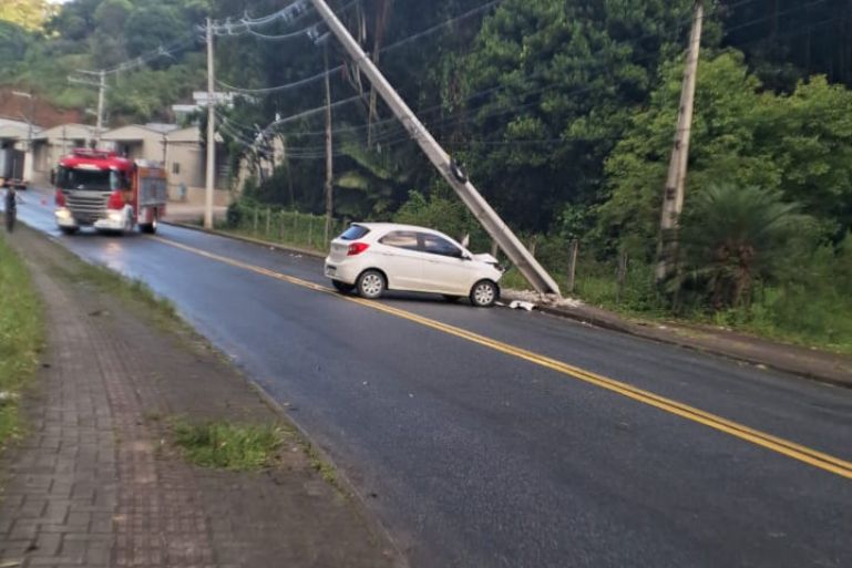 Um acidente de trânsito mobilizou as equipes do Corpo de Bombeiros Militar no fim da tarde desta quarta-feira (10) em Brusque. Por volta das 18h05, uma mulher de 36 anos colidiu com um poste ao conduzir um Ford Ka branco na Rua Nova Trento, bairro Azambuja.