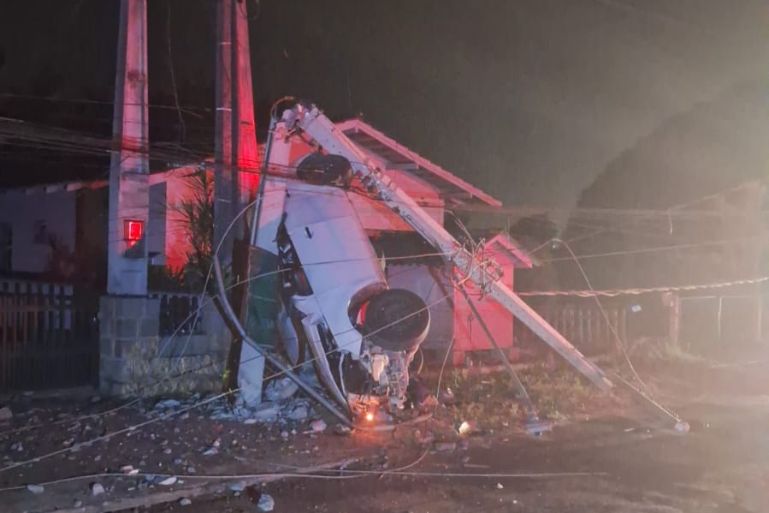 No local, as guarnições constataram que um VW/Gol branco havia colidido violentamente contra o poste, que ficou completamente destruído. Com o impacto, a fiação elétrica se desprendeu e ficou caída sobre a via.