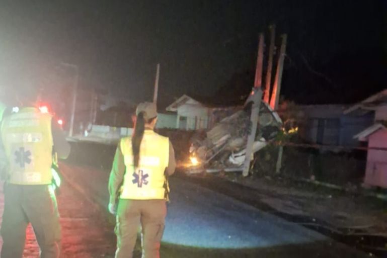 No local, as guarnições constataram que um VW/Gol branco havia colidido violentamente contra o poste, que ficou completamente destruído. Com o impacto, a fiação elétrica se desprendeu e ficou caída sobre a via.