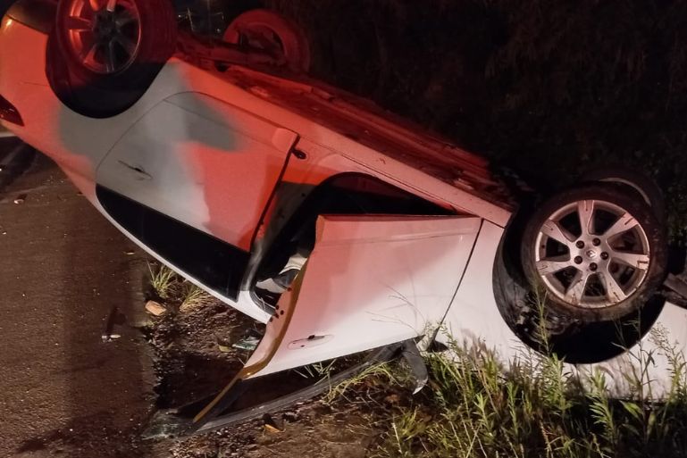 Automóvel fica com as rodas para o ar em acidente no Steffen