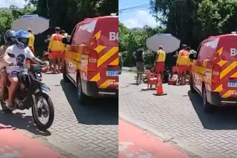 O impacto da descarga elétrica provocou uma parada cardiorrespiratória. Uma viatura da Polícia Militar que estava próxima ao local prestou o primeiro atendimento. Em seguida, guarda-vidas e equipes do Corpo de Bombeiros também tentaram socorrer o homem.