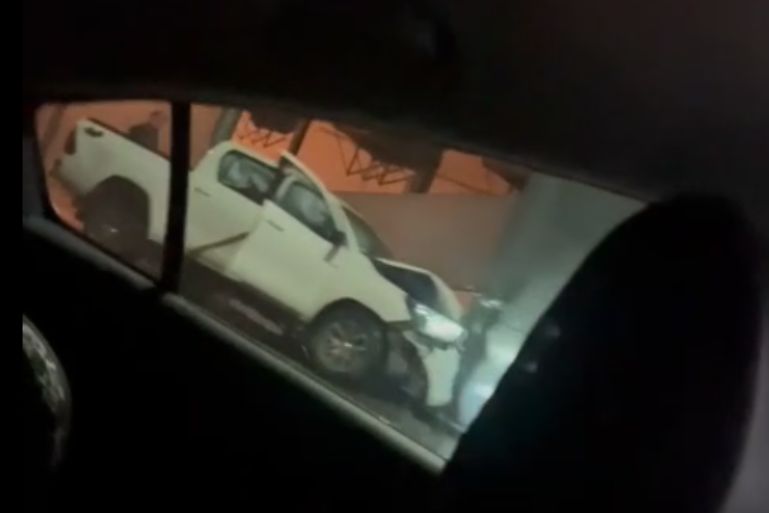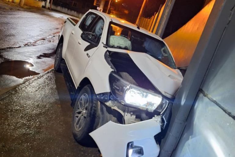 A imagem enviada à reportagem da Rádio Araguaia mostra uma caminhonete branca com a parte dianteira bastante danificada após bater contra um muro. O impacto foi forte o suficiente para deixar o veículo parcialmente sobre a calçada.