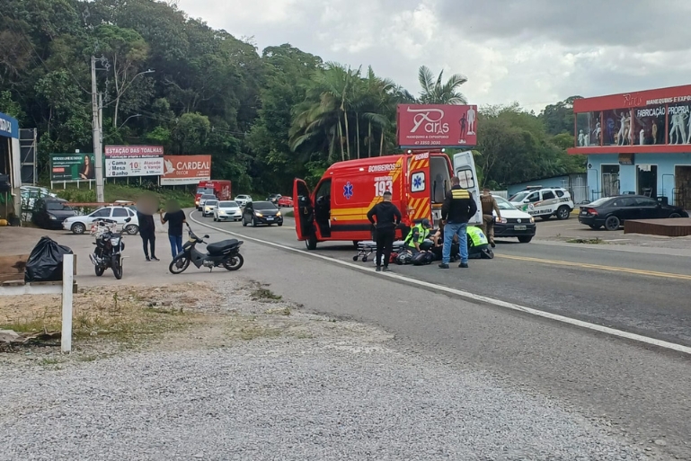 Por volta das 08:20 desta quinta-feira (23), o Corpo de Bombeiros foi acionado para atender uma ocorrência de colisão envolvendo duas motos, na Rod. Antônio Heil, bairro Santa Rita.