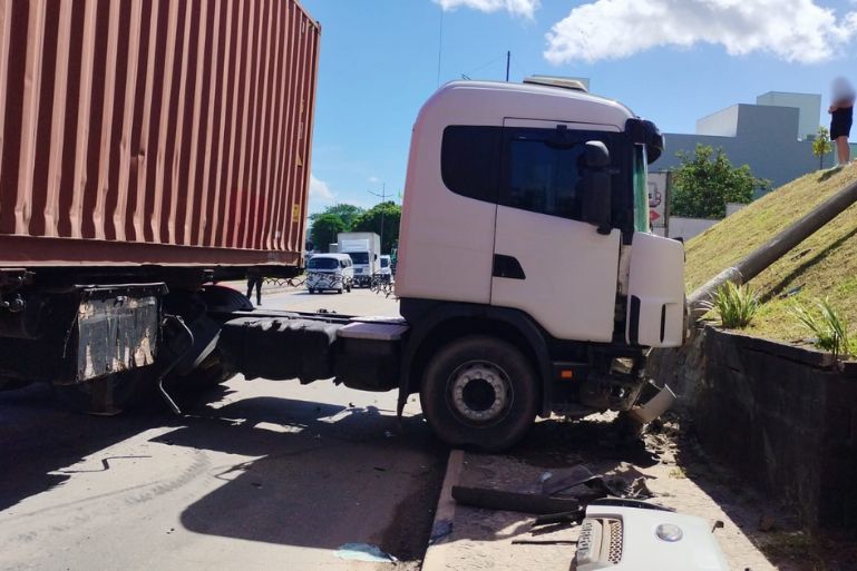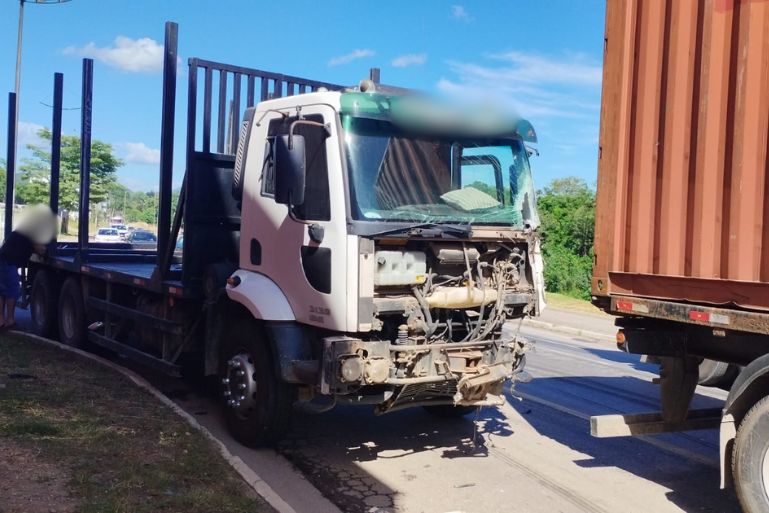 Uma colisão foi registrada na manhã desta quarta-feira (17/12) na Avenida Bepe Rosa (Beira-Rio), nas proximidades do Archer Materiais de Construção. De acordo com as primeiras informações, o acidente envolveu três veículos, sendo dois caminhões e um automóvel.