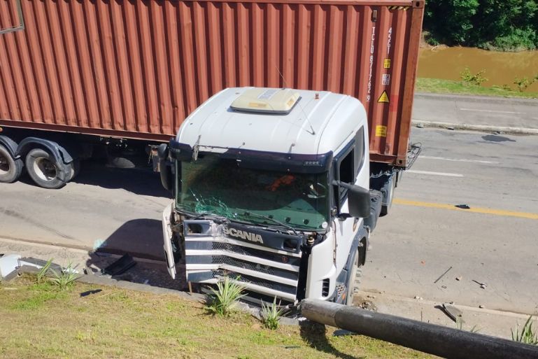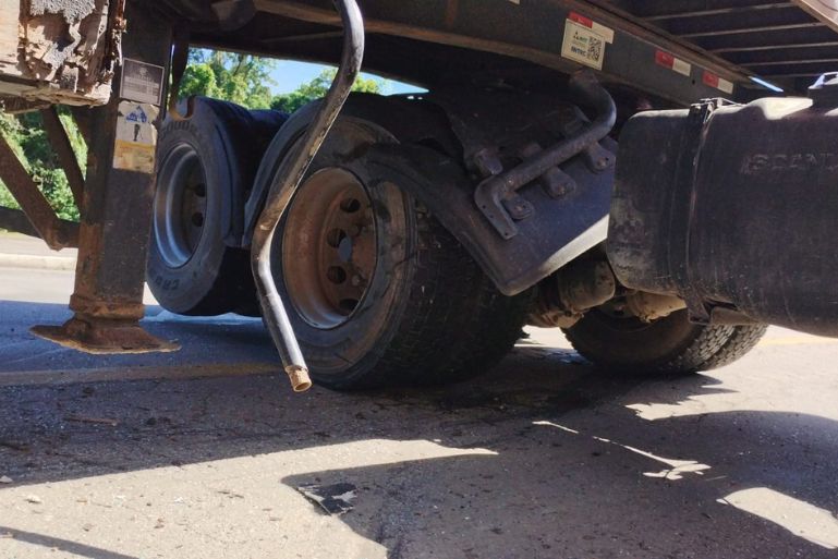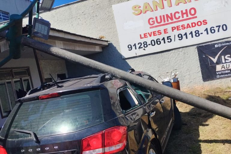 Na sequência, um dos caminhões atingiu o poste que caiu sobre o automóvel estacionado em uma empresa de auto vistoria localizada na região.