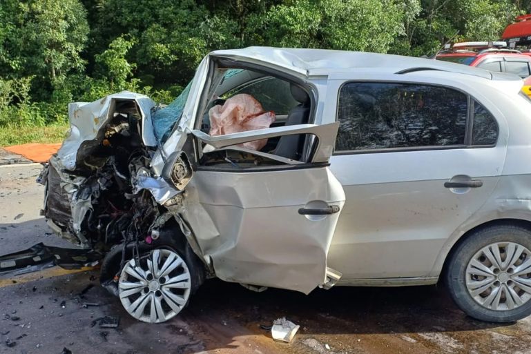 Um grave acidente registrado na tarde de sexta-feira (26/12) deixou cinco pessoas feridas na BR-470, em São Cristóvão do Sul, no Meio-Oeste de Santa Catarina. A colisão frontal envolveu um VW Novo Gol e um Toyota Corolla e aconteceu por volta das 16h, no km 223,4 da rodovia.
