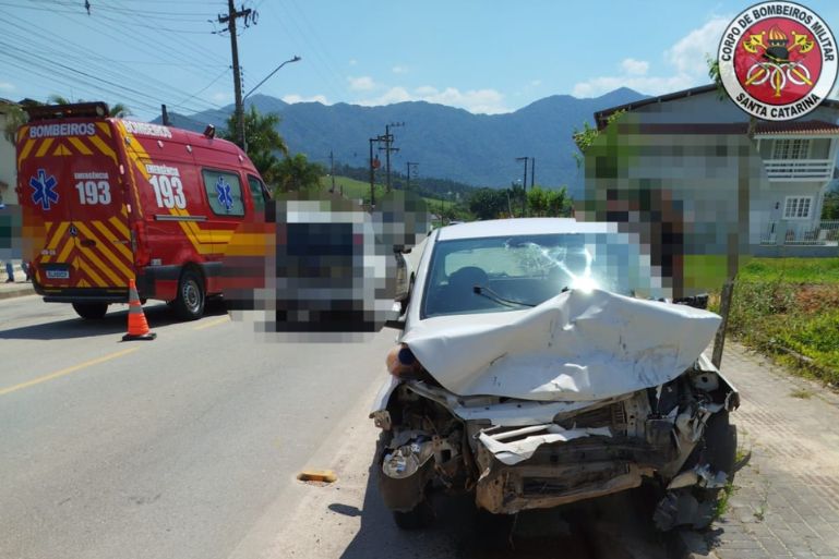Na tarde desta sexta-feira (14), por volta das 13h38, uma colisão entre dois veículos mobilizou o Corpo de Bombeiros Militar em Guabiruba. O acidente ocorreu na rua Prefeito Carlos Boos, no bairro Aymoré, envolvendo um Fiat Fiorino e um VW Gol, ambos de cor branca.