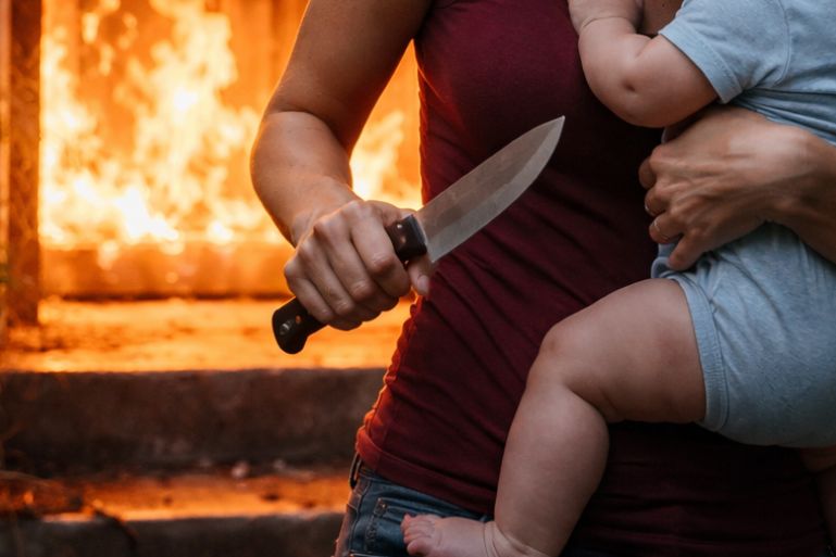 Conforme apurado, a mulher, portando uma faca e com o bebê de seis meses no colo, teria ameaçado a própria filha, de 11 anos, a mãe, de 62, e a irmã, de 37 anos. Para se protegerem, as vítimas se trancaram dentro da casa, momento em que a autora ateou fogo na porta.