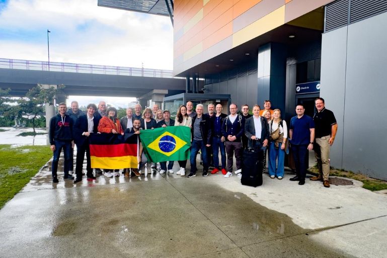 A delegação alemã desembarcou no Brasil nesta segunda-feira (27) e permanecerá na região até o dia 3 de novembro, participando de uma intensa programação que inclui visitas técnicas, eventos institucionais e encontros com lideranças locais e estaduais.