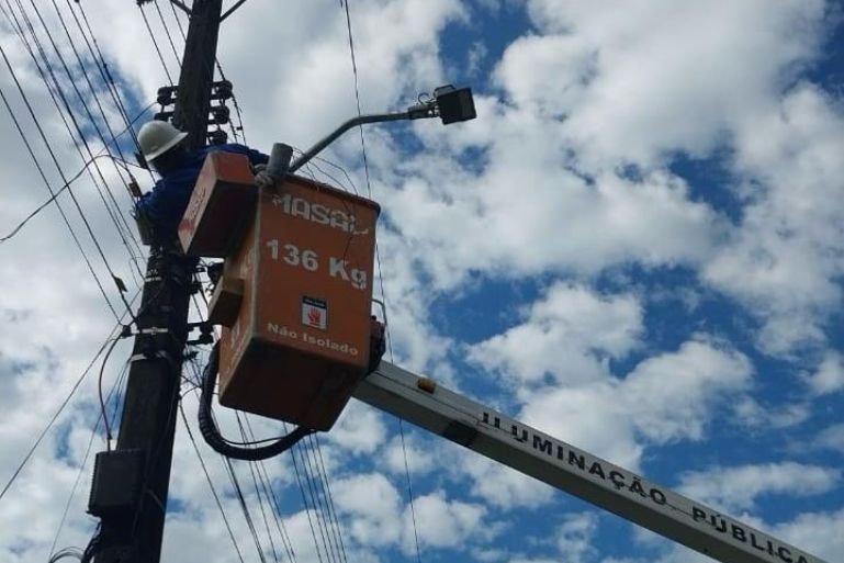 Para a execução do serviço, uma equipe composta por dois servidores e uma caminhonete foi mobilizada durante uma semana de trabalho. No total, foram instaladas 77 lâmpadas de LED de 80 quilowatts, substituindo as antigas luminárias convencionais.