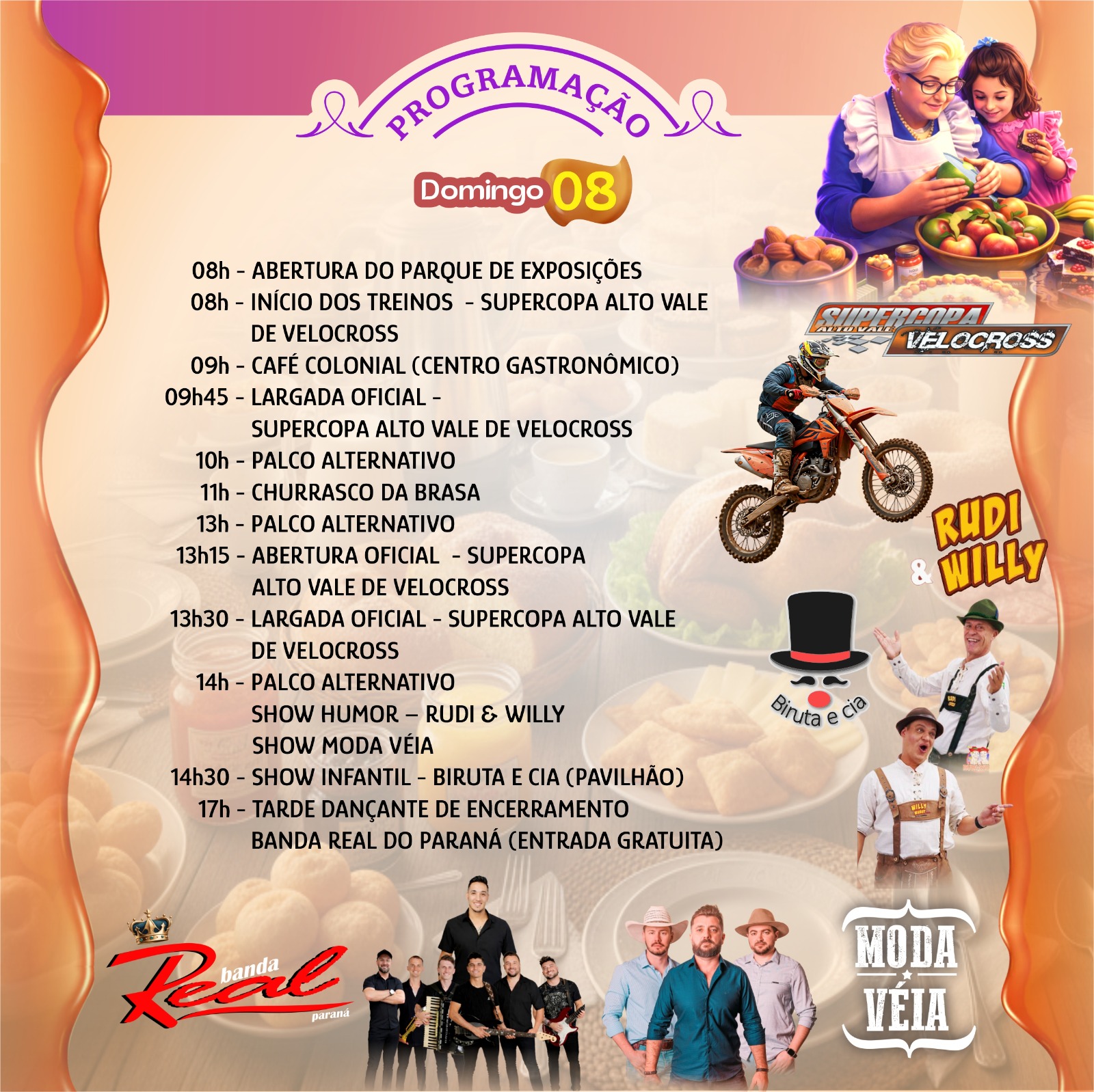 - 17h – Tarde Dançante de Encerramento com Banda Real do Paraná (entrada gratuita)