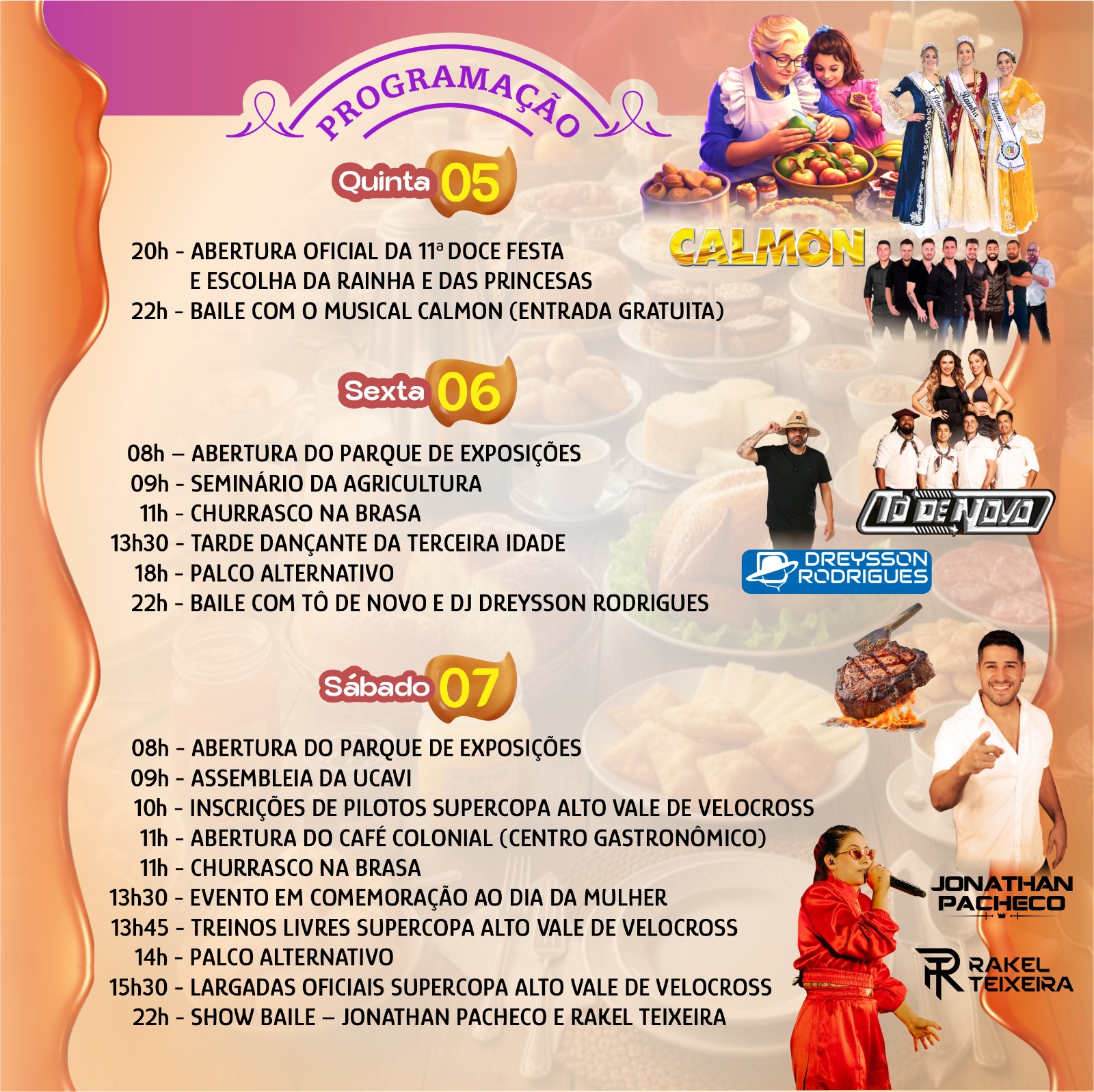 - 22h – Show/Baile com Jonathan Pacheco e Rakel Teixeira