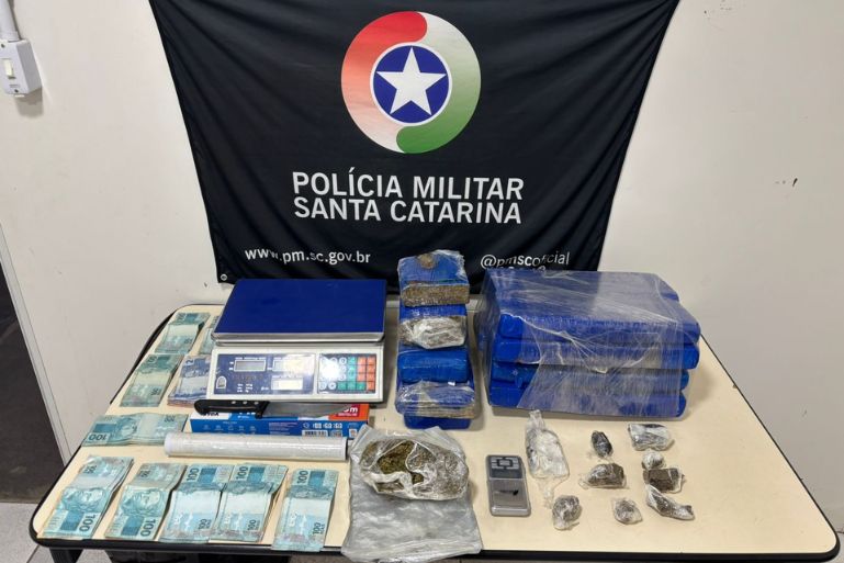 Na sequência, a equipe realizou buscas no imóvel e encontrou aproximadamente 18 quilos de maconha, além de 160 gramas de haxixe e 178 gramas de skank. Também foram apreendidas duas balanças de precisão, uma faca utilizada para fracionar o entorpecente, um rolo de papel filme e a quantia de R$ 9.173 em dinheiro.
