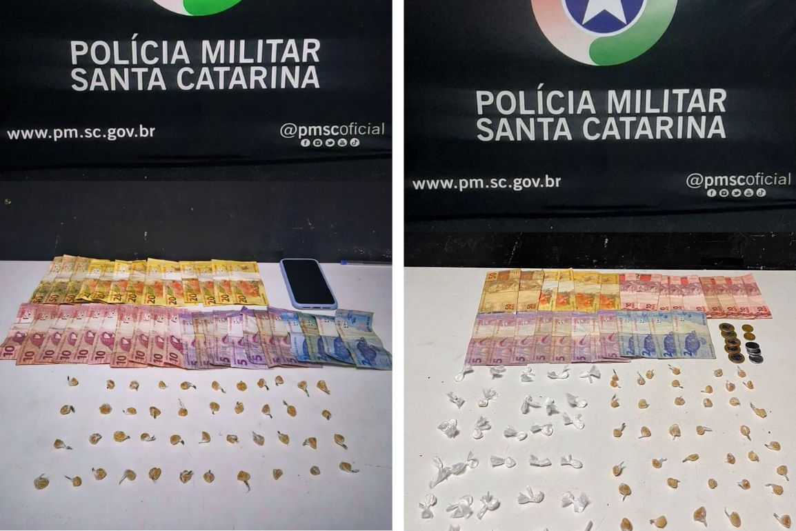 A Polícia Militar de Itajaí apreendeu dois adolescentes por tráfico de drogas em diferentes ocorrências registradas nesta sexta-feira (10) no bairro Cordeiros. As ações foram realizadas pelo 1º Batalhão de Polícia Militar e resultaram na apreensão de entorpecentes, dinheiro e um celular.